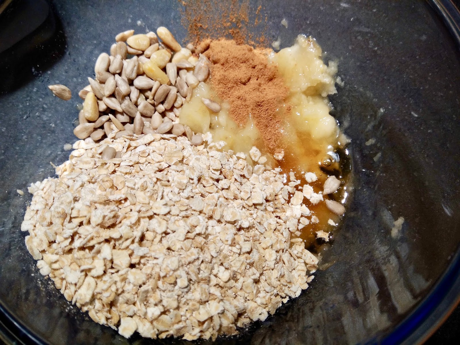 Ecraser la banane et ajouter tous les autres ingrédients jusqu'à la cannelle yc.